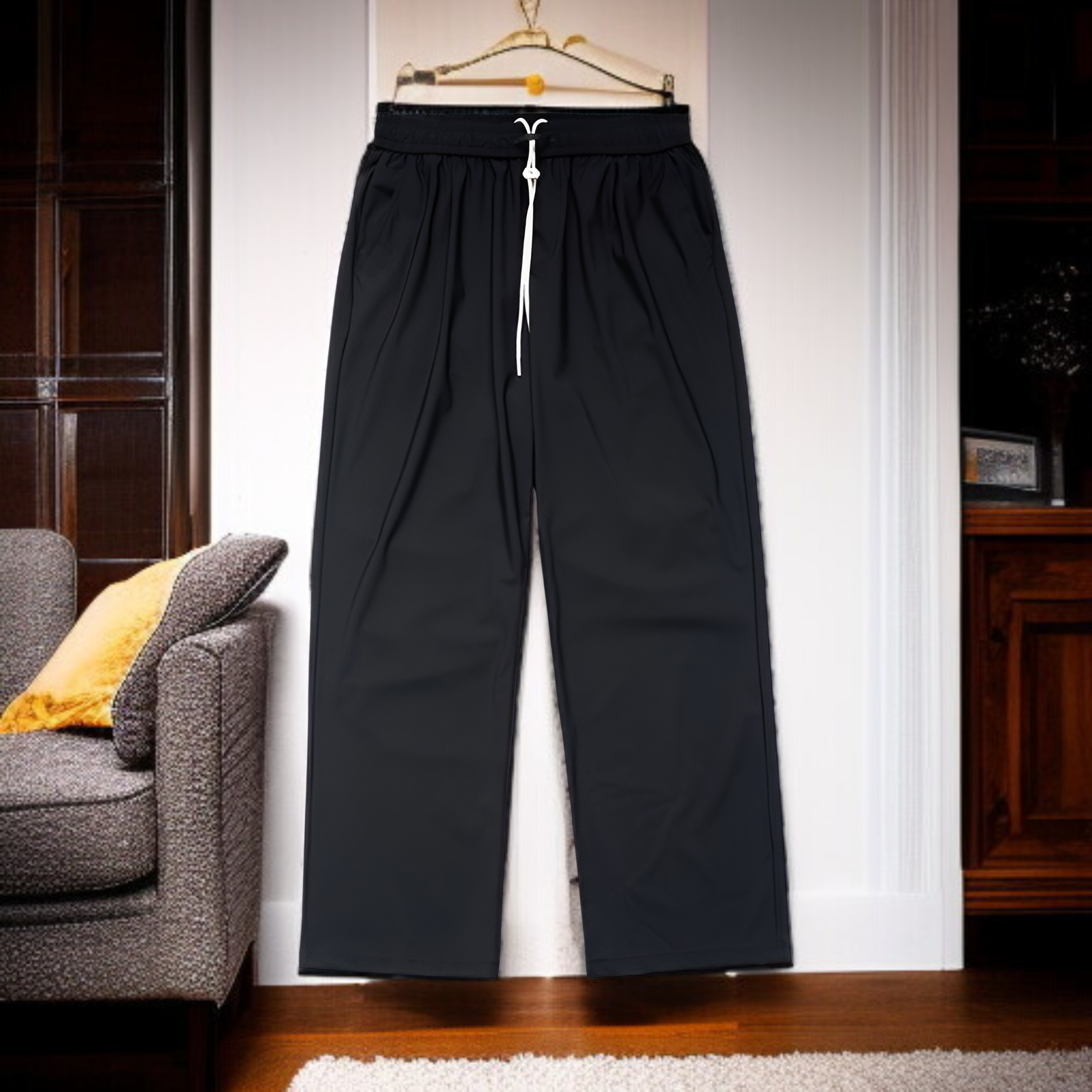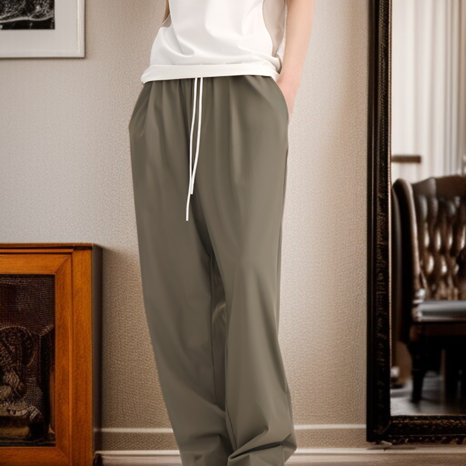 チェック柄速乾空調パンツ高弾性クールパンツゆったりスポーツカジュアルストレートパンツ男女兼用2025春夏新作パンツ