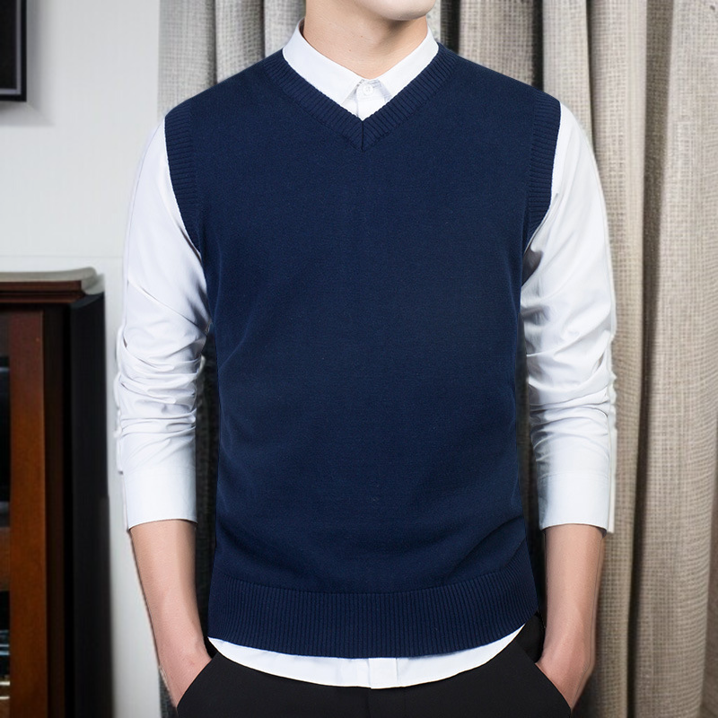 秋と冬のプルオーバーメンズウールセーターカジュアルメンズスリムジャンパーメンズ新しいVノースリーブ男性